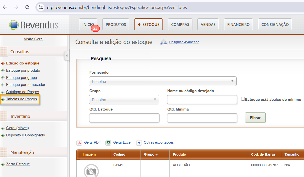 Resumo: Aprenda a visualizar e gerenciar as tabelas de preço no módulo de Estoque do sistema, facilitando o controle de valores aplicados sobre os produtos.